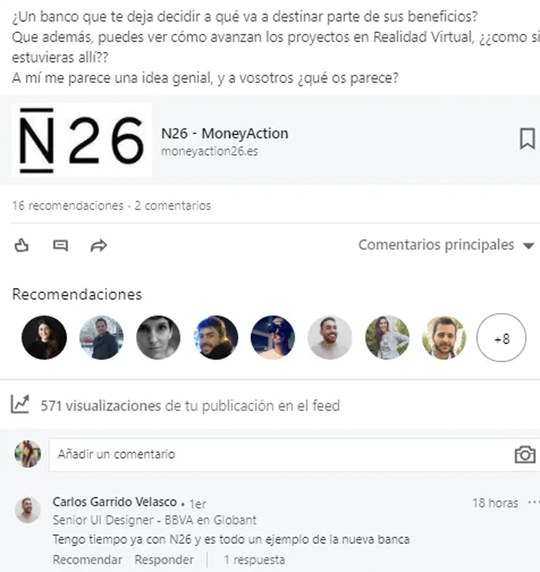 “Tengo ya tiempo siendo cliente con N26 y es todo un ejemplo de la nueva banca”